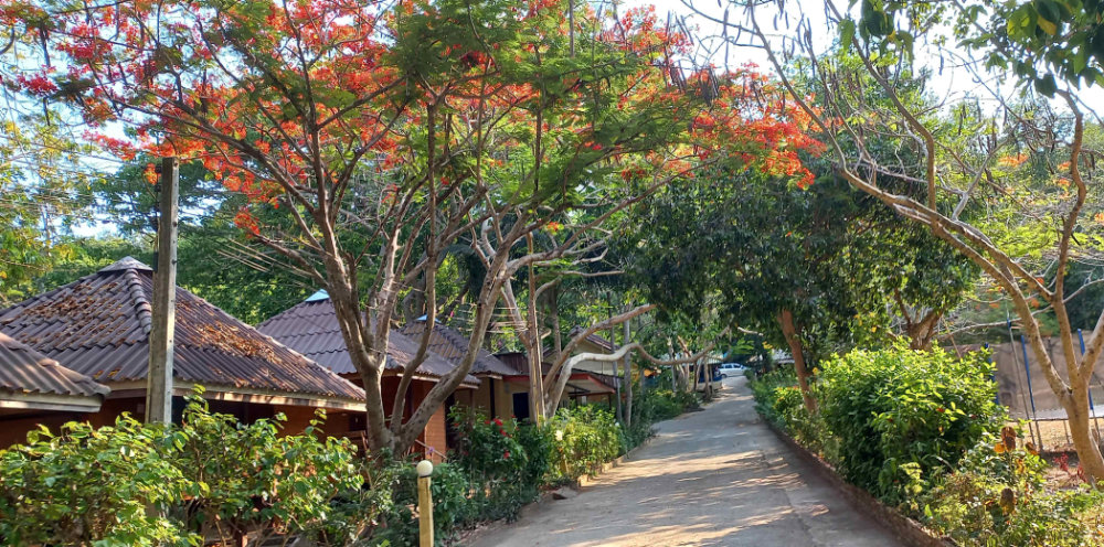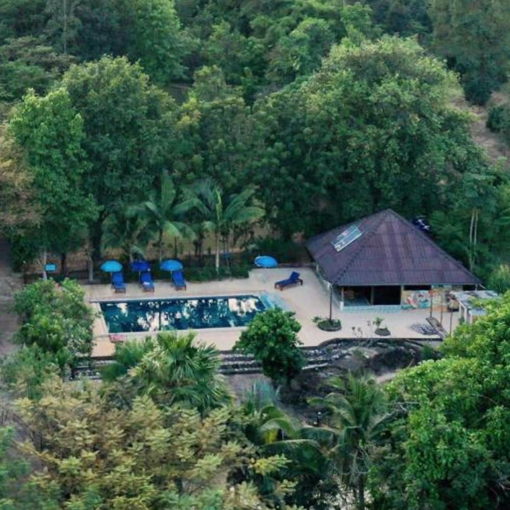 Accommodation includes private cottages and houses in large gardens each with their own bathroom, aircon and fans in rooms. There is a restaurant, wifi and a swimming pool at the resort. Prices range from 900 baht for one room to 2,800 for 3-bedroom house. The resort provides a venue for courses and has hosted yoga, health retreats, permaculture convergence, an art retreat, and private gatherings. We have 16 rooms and can accommodate up to 40 people with catering.