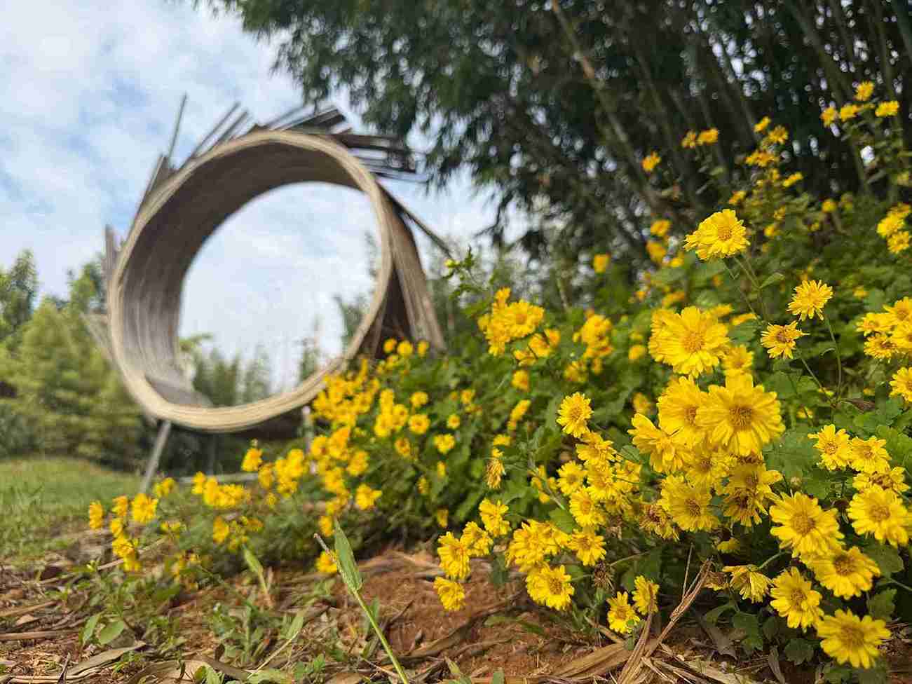 Bamboo forest retreat for learning, living, and community growth.